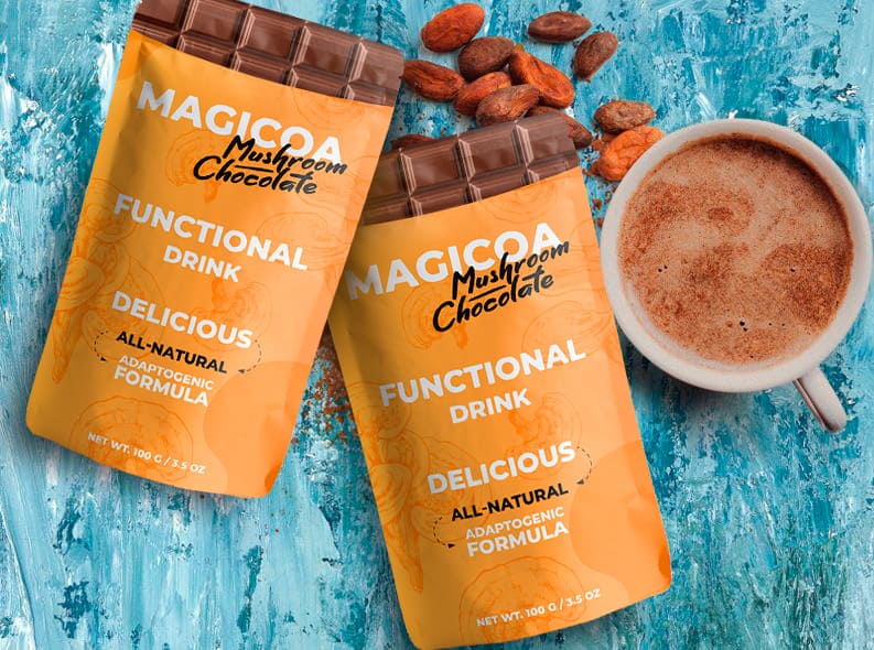 Magicoa to napój na bazie ziaren kakaowca i grzybów reishi. Zawiera również dodatkowe składniki, które zwiększają spalanie tłuszczu dziesięciokrotnie, dzięki czemu poprawia się metabolizm lipidów i węglowodanów oraz wspomagane jest oczyszczanie wątroby i nerek.